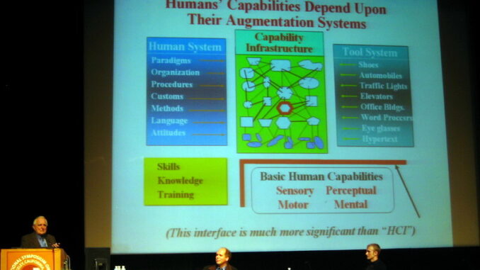 what Doug calls the collective IQ of organizations and the world. He believes that we need new infrastructure to support this endeavour. Doug encapsulates this by saying that “books are obsolete” (ironically in a keynote to the American Library Association) and that we need to build instead a dynamic knowledge repository (DKR) and other new tools. Doug continues to be active in research. He founded the Bootstrap Institute to further the concept of finding new ways to help humanity cope with complex problems. He is also active in the Millennium Project. Very impressive for anyone, but especially for an 82 year old.