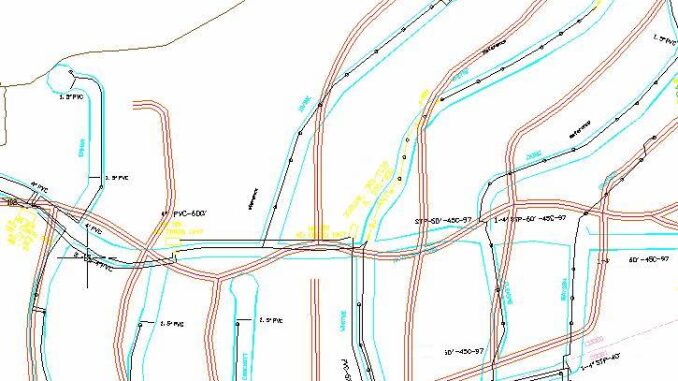 capture the location of their facilities against this landbase. When the organization decides to adopt a new landbase, which can happen for several reasons such as improved accuracy or because it decides to buy a landbase from TeleAtlas or NAVTEQ rather than maintaining its own, it finds that the locations of its facilities relative to recognizable geographic features such as road centrelines change. In the example I’ve included, the old landbase is blue, facilities are black, and the landbase is red. In many cases facilities, which typically run under or alongside roads, are no longer on or even near the correct road. In a nutshell the problem is that the productivity of field staff is diminished, because, somewhat paradoxically, although the accuracy of the landbase improves, it becomes more difficult to locate facilities.