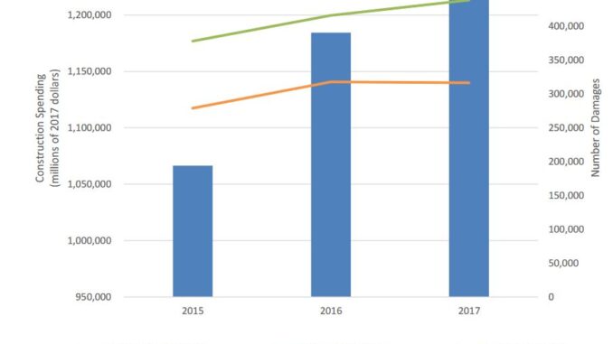 The Common Ground Alliance (CGA) has released its latest DIRT (Damage Information Reporting Tool) Report covering 2015, 2016 and 2017. To make it possible to estimate the total number of events and to allow comparison across years, a refined approach for massaging the data was used in this report. Taking into consideration excavation activity, the analysis reveals that total damages have plateaued over the past three years at about 400,000 damage events per year.