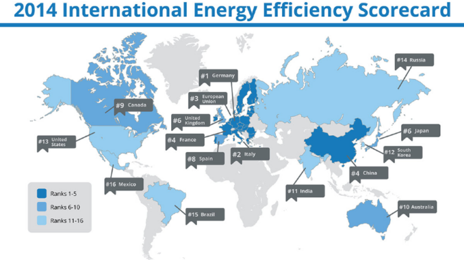 According to the 2014 scorecard released by the American Council for an Energy-Efficient Economy (ACEEE) Germany is #1 out of the 16 nations studied in the World for energy efficiency. In Germany buildings currently account for 40 percent of power consumption and a third of CO2 emissions.