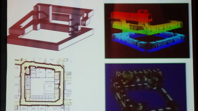 At the SPAR International conference Avideh Zakhor from the University of California Berkeley gave an enthralling presentation about her research on capturing optical and thermal point clouds of the insides of buildings using a portable backpack containing a collection of sensors. Her team has also developed analytical software tools for generating floor plans, distinguishing rooms, identifying staircases, texture mapping surfaces, identifying windows, finding heat sources such as computers and human occupants, identifying lights, and even estimating plug load lower consumption – all automatically. The software her team has developed can generate input in the form of an IDF file for the Department of Energy’s EnergyPlus energy performance analysis program. Avideh said that soon it will also be able to generate a gbXML file, which can be consumed by almost all building energy performance analysis software.