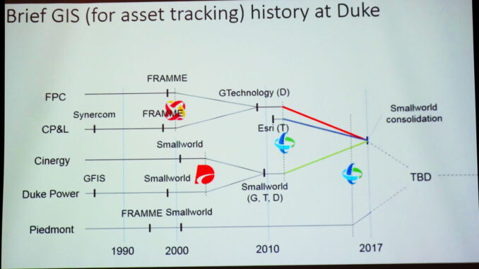 At Distributech 2018 Ron York, Lead Consultant/ GIS, and Francisco Sarmento, Lead Consultant, both at Duke Energy described how Duke has resolved the problem of a common viewer for several different GIS systems which was brought to a head by the merger of Duke and Progress. They also described the somewhat unusual process by which Duke selected the vendor whose product provided the successful solution.