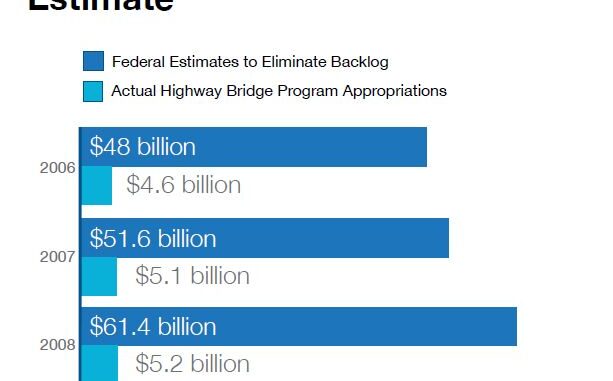 According to the FHWA’s 2009 statistics, $70.9 billion is needed to upgrade America’s deficient bridges. The actual funds allocated in 2009 was a little over 7% of what was required.