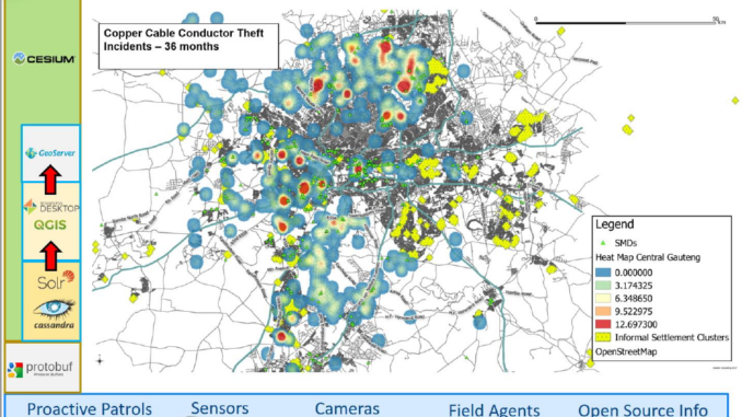 A highlight of the SA Geotech conference in Johannesburg was a presentation by Ryno Goosen of Suritec Geospatial. Ryno, who was awarded the Best Paper prize at SA Geotec, gave a fascinating presentation about how he developed an open source GIS solution to fight copper cable theft.
