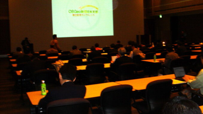 that more than 170 people attended, which is a tremendous turnout. Kazunori Noda, well-known in the geospatial community in Japan was MC. Toru Mori, Founder, President and CEO of Orkney presented an overview of the development of the OSGEO. Myself and Professor Venkatesh Raghavan of Osaka City University were invited to give keynotes. In addition there something