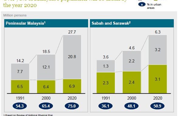 Malaysia expects that 70% of its inhabitants will be living in urban environments by 2020. Last year Malaysia released its 10th Malaysia Plan (10MP), which focuses on developing infrastructure to improve productivity and making the private sector the engine of development. The target is to make Malaysia a high income economy through productivity growth. One of the reasons the government wants to encourage urbanization is international empirical evidence that cities have three times the productivity of rural areas. MP10 identifies 12 National Key Economic Areas (NKEA), most of which are sectoral, but one of which is Malaysia’s largest urban centre Greater Kuala Lumpur.