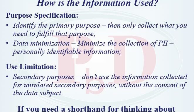 Ann Cavoukian’s recommendation for doing this is what she calls Privacy by Design. The first principle of which is minimizing the collection of PPI data and using it only for the primary purpose for which it was collected.