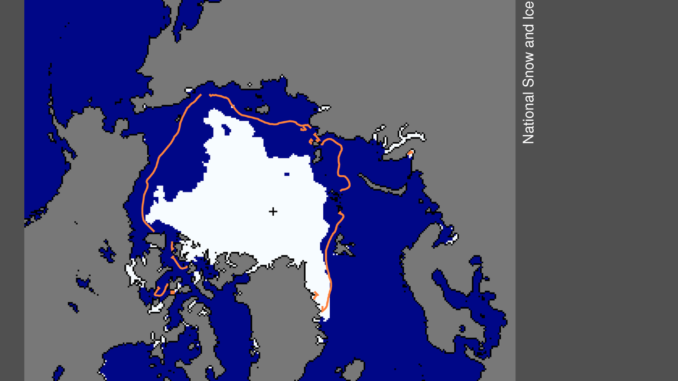 This year according to the NSIDC Arctic sea ice extent is below the 1979 to 2000 average and above the extent for 2007. The southern route of the Northwest Passage is free of sea ice according to imagery from the University of Bremen and the NSIDC Multisensor Analyzed Sea Ice Extent (MASIE) analyses.