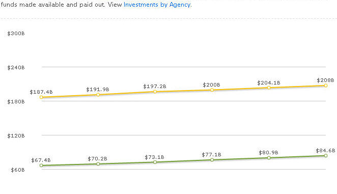 The US Federal Government’s web site devoted to the American Recovery and Reinvestment Act (ARRA) stimulus reports that as of Aug 21, over US$208 billion has been allocated and US$84.6 billion has been paid out.