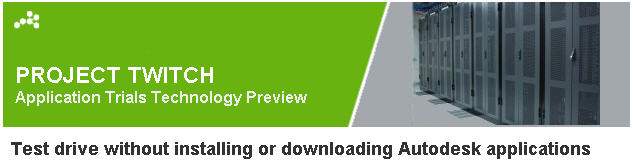Project Twitch is an Autodesk Labs cloud project to run AutoCAD and other design applications over the web. It is now available for testing at Autodesk Labs. The applications you can test are