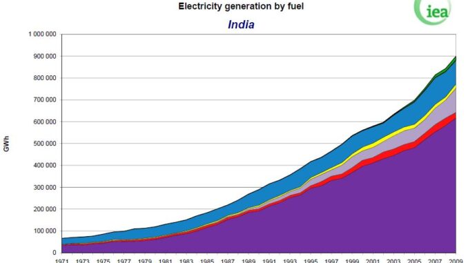 India is projected to become the world’s 5th largest economy by 2020. To achieve that will require a lot more power generation. Electric power demand in India has been growing at an average 3.6 % over the past 30 years. Electric power generation capacity reached over 185.5 GW in November 2011, placing India 5th in the world. But a quarter of the population (about the population of the US) does not have access to electric power. The IEA estimates that $135 billion in investment is required to provide universal access to electric power. Even more incredibly the IEA estimates that India will require 600-1200 GW of new capacity by 2050. For comparison US total generation in 2010 was just over 1000 GW. In addition India is investing in renewable energy, primarily wind and solar. Indian renewable energy investment reached $10.3 billion in 2011, up 52% over 2010 and ahead of Brazil at $8.2 billion, but much less than the US ($56billion) or China ($47billion).