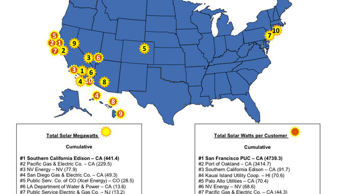 There’s an interesting article in Wired listing the top utilities in the US in 2008 for solar power generation. It is really amazing how many of these are in California. Southern California Edison, which provides power to Los Angeles, topped the total capacity ratings with 441 megawatts. Pacific Gas & Electric, which covers San Francisco and northern California, installed 85 megawatts of new solar generating capacity, more new solar capacity than any other utility.