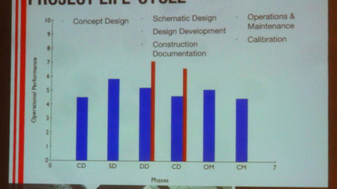 Another important factor inhibiting the full benefit of energy modeling is that it is rarely used in the conceptial design phase of a building project when its impact would be most significant. In Jean’s experience he is called in after the architect has completed the basic design, during the design development and construction documentation phases. This late in the game there are severe limits on what can be changed to optimize building energy performance.