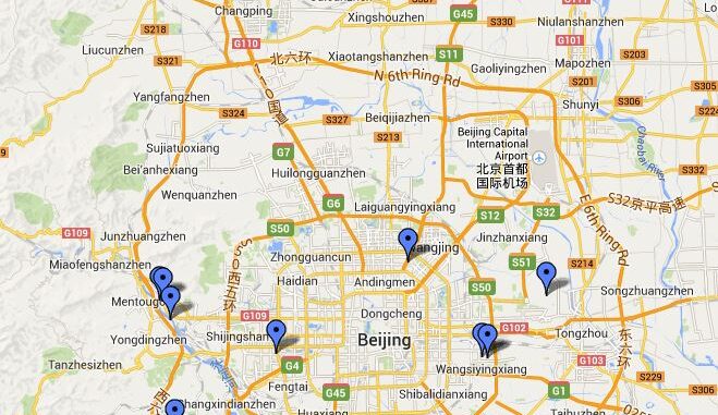 The China Beijing Environment Exchange (CBEEX) hosts trading in allowances (for one tonne of CO2 emissions) for the Beijing market. Carbon prices were 50 yuan in Beijing, 80 yuan in Shenzen, and 28 yuan in Shanghai. Coal-fired power plants (Beijing power plants are shown on the map) will receive free permits for 2013 equal to 99.9 percent of their average emissions for 2009 to 2012. By 2015, free allowances will drop to 99.5 percent. Manufacturers will receive permits equal to 98 percent of their historical emissions. This will drop to 94 percent in 2015.