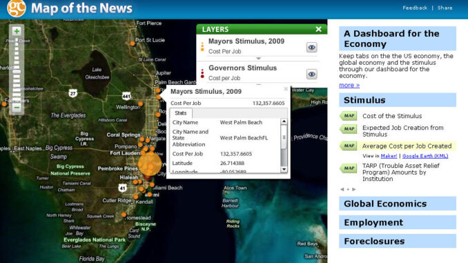 and is just too cool to miss. It tracks stimulus spending, job creation, foreclosures, and other economic factors at a very detailed level, by town and region.