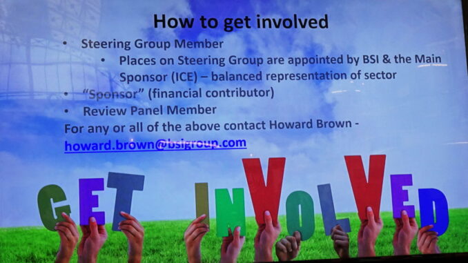 To support the revision, which will again be performed by volunteers, Ian is looking for sponsors to fund the use of BSI and people to join the review panel.