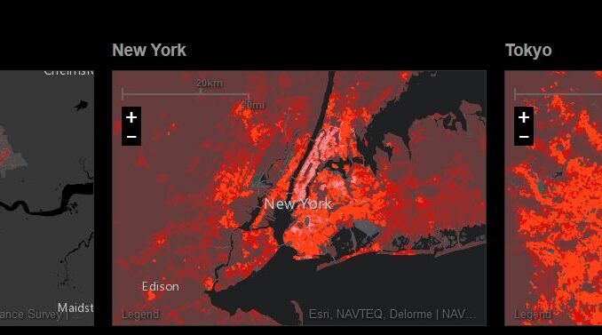 people, places, movement, and systems for different cities. The exhibit at ESRI UC features large digital displays of