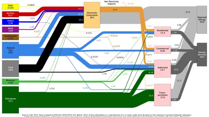 According to Lawrence Livermore National Labs’ annual energy report, U.S. energy consumption in 2013 increased by 2.3 quadrillion BTUs (quads) or 2.4% to 97.4 quads.