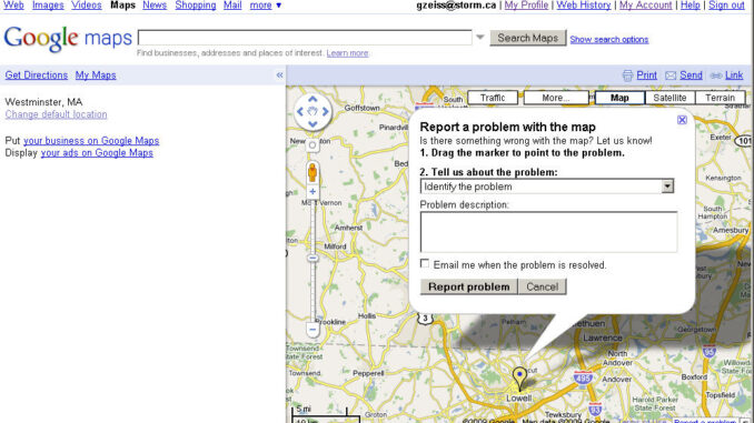 If you remember, Eric Raymond in the Cathedral and the Bazaar floated the "many eyeballs" theory that all bugs are shallow if you have a large enough community involved in finding solutions. I also remember that Tim O'Reilly in his seminal paper What is Web 2.0 identified some of the important differences between Web 1.0 and Web2.0, among which a key one in my view was participation. In the early days of the web, we were passive consumers of data. Web 2.0 brought Wikipedia, where users contributed as well as consumed information. Like Wikipedia the new paradigm has become so successful that wikis are now ubiquitous and the advantage of involving users in creating and maintaining data has been demonstrated over and over. A now classic example is OpenStreetMap. Most recently Google has realized that users are "remarkable data sources themselves", and Google Maps and Google Earth have a new tool that lets you the user report errors in Google's maps. There is a new menu item "Report a Problem" that allows you to suggest edits, like a new highway on-ramp, new names of parks or buildings, and so on. Google promises to vet the edit within a month and if you submit your email address, they'll keep you posted on their progress.