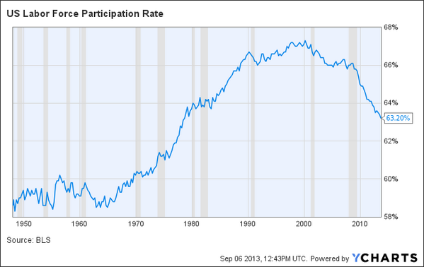 In the U.S. because of its policy of encouraging immigration, the shrinking workforce is not the result of population decline, but the result of a decreasing participation rate. The labour participation rate is the percentage of the population that is employed or actively looking for work. In the U.S. as a result of increasing numbers of women entering the workforce and increasing longevity, the participation rate increased from the 1960s until about 2000 when it reached about 67%.