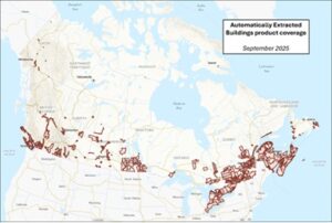 Since October 2024, 1.2 million new building footprints have been added to the Automatically Extracted Buildings product, generated from lidar data. These new additions plan span several provinces and territories, including Ontario, Quebec, Saskatchewan, Alberta, British Columbia, Newfoundland and Labrador, Yukon, and Nunavut. The product now includes over 13.6 million building footprints.