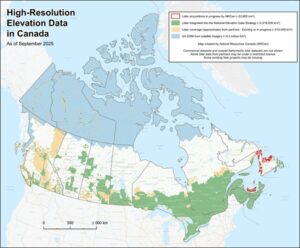 - 2025: Official migration of the Federal Airborne Lidar Data Acquisition Guideline into a recognized National Standard of Canada. This year, the HRDEM coverage reached 2 million km², and a complete update of the Canadian Arctic HRDEM data was performed, using ArcticDEM version 4.1.