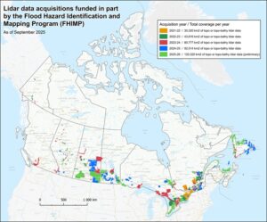 - 2021: First topo-bathymetric lidar acquisition contract managed by NRCan and the launch of the Flood Hazard Identification and Mapping Program (FHIMP) led by NRCan. This program accelerates the acquisition of lidar data for flood mapping in areas at high-risk of flooding.