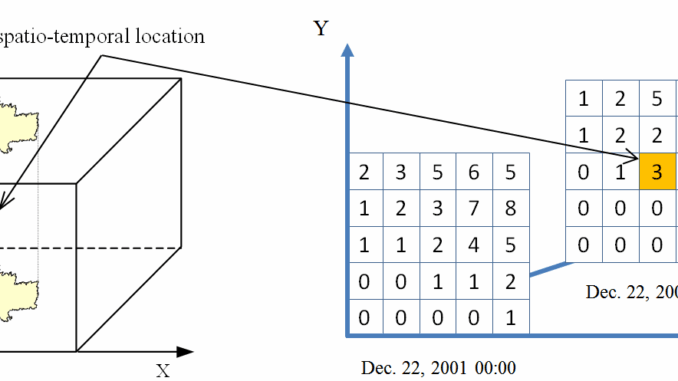 Figure 1. The data in a netCDF file is stored in the form of arrays. Variation of precipitation over time (three-dimensional data: data over an area X,Y varying with time T).
