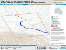 Ice jam monitoring is something that greatly impacts northern communities that lie alongside rivers and can frequently be affected by ice jams that lead to dangerous conditions. Normally, these communities have ice breakup monitoring operations, but during 2020 and 2021, COVID social distancing measures affected these regular operations and resulted in the need for a new approach. The EGS helped communities in the Northwest Territories implement an ice monitoring program that relied upon the use of RADARSAT Constellation Mission (RCM) data. By using SAR to assess the smoothness or relative roughness of ice on the Mackenzie River, EGS and the affected communities were able to remotely assess and monitor the ice jams in a new and innovative way.
