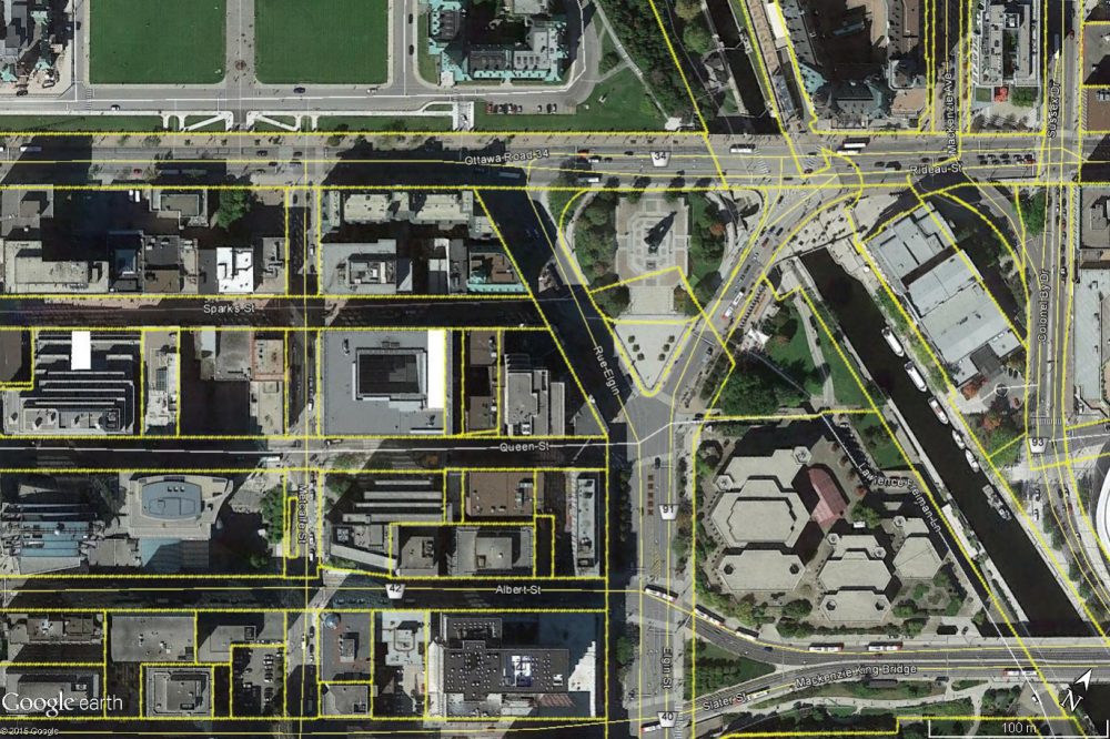 Property parcels (outlined in yellow) of the City of Ottawa