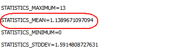 The last part is easy. The result raster from the previous step will tell us that its average value is 1.13.