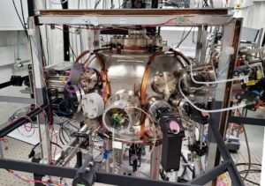 Left: A very low vacuum and temperature chamber at the Ultracold Matter Lab at Imperial College. This underscores the challenges facing miniaturization for cold matter-based quantum sensors. By contrast, devices that use Rydberg atom approaches could be quite small, and we may see those types of technologies for geomatics applications much sooner.
