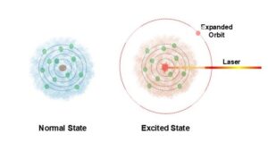 The mechanism is (and this is admittedly an over-simplification), that you can use a laser to excite an atom, and it can put a single electron in a higher “orbit”. Orbit is not exactly the right term, as the particles in an atom are not moving in nice uniform orbits (like the diagrams we were shown in school). It is more like a fuzzy cloud of particles, behaving more like waves. The electron does though move further out, far from the other particles. During the brief period, the electron is in this excited state, a lot can be gleaned from its behavior. A bonus is that it is possible to isolate the observations of these distant particles without interference from particles closer to the nucleus. Again, it is large populations of atoms that are excited and then interrogated.