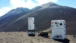 Left: A quantum gravimeter was used for a year-long volcano study at Mt. Etna, Italy. Source: iXblue (Exail)