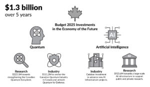 - Measuring AI’s Impact: To understand how artificial intelligence is reshaping work and industry, Statistics Canada will receive $25 million over six years (and $4.5 million ongoing) to launch the Artificial Intelligence and Technology Measurement Program (TechStat). The initiative will track how AI is being adopted and what it means for jobs, productivity, and the economy. (Budget 2025 – Chapter 1 Seizing the Full Potential of Artificial Intelligence)
