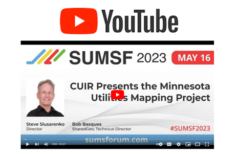 Steve Slusarenko, Director of CUIR (Canadian Underground Infrastructure Register) and Bob Basques, Technical Director of SharedGeo, presented the “Case for Canadian Underground Infrastructure Register” during their May 16, 2023, SUMSF 2023 livestream presentation called, “CUIR Presents the Minnesota Utilities Mapping Project.”