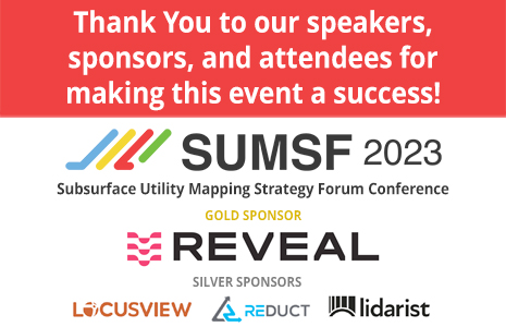 SUMSF, the Subsurface Utility Mapping Strategy Forum Conference was held on May 16, 2023, with workshops following on May 17. The conference, founded by Geoff Zeiss, is a virtual event that brings organizations, associations and individuals from public and private sectors together to contribute and share information to improve underground infrastructure mapping.