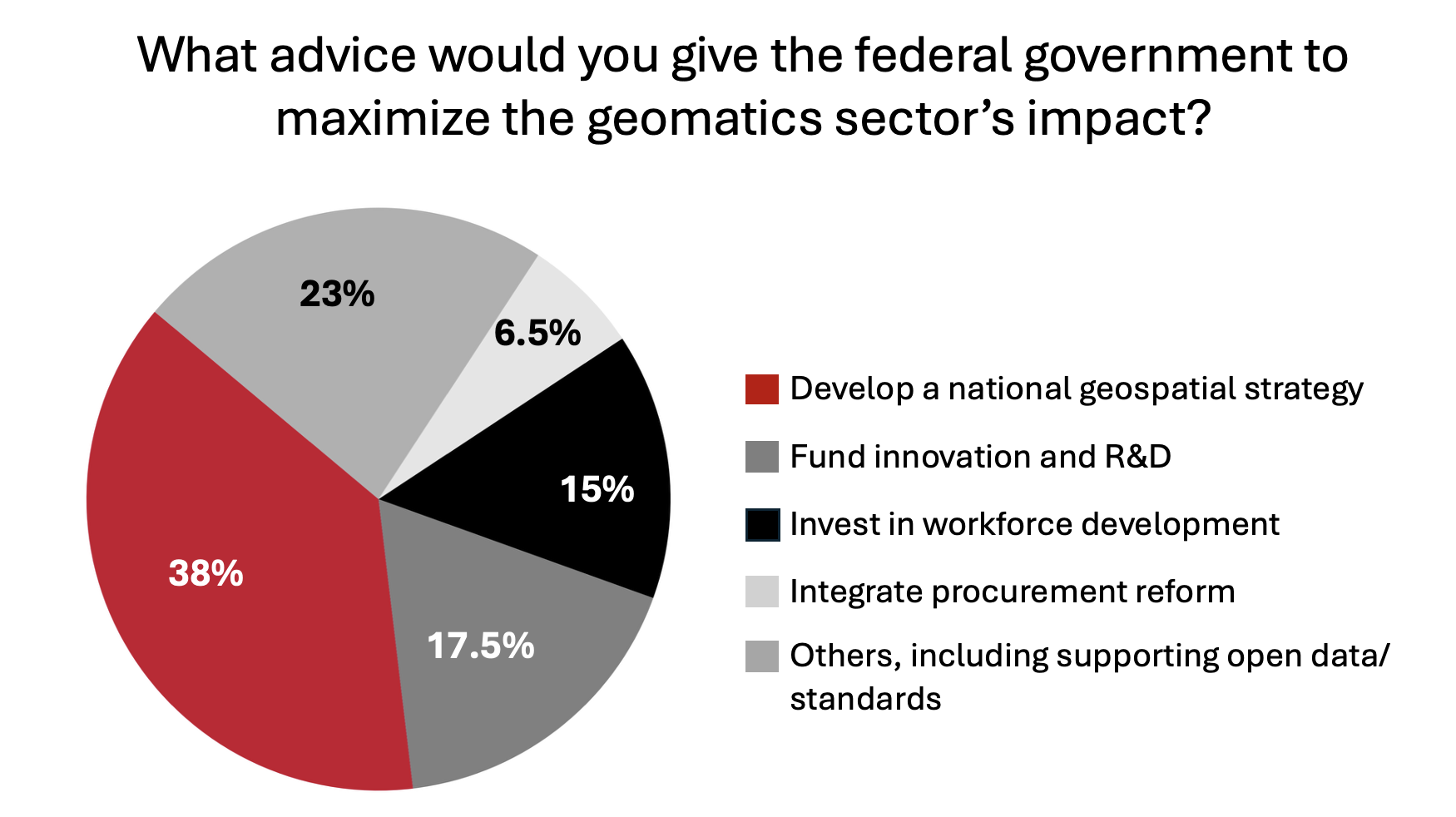 Takeaway: Respondents see visibility and advocacy — not just technical capability — as critical to ensuring geomatics plays a central role in Canada’s nation-building agenda.