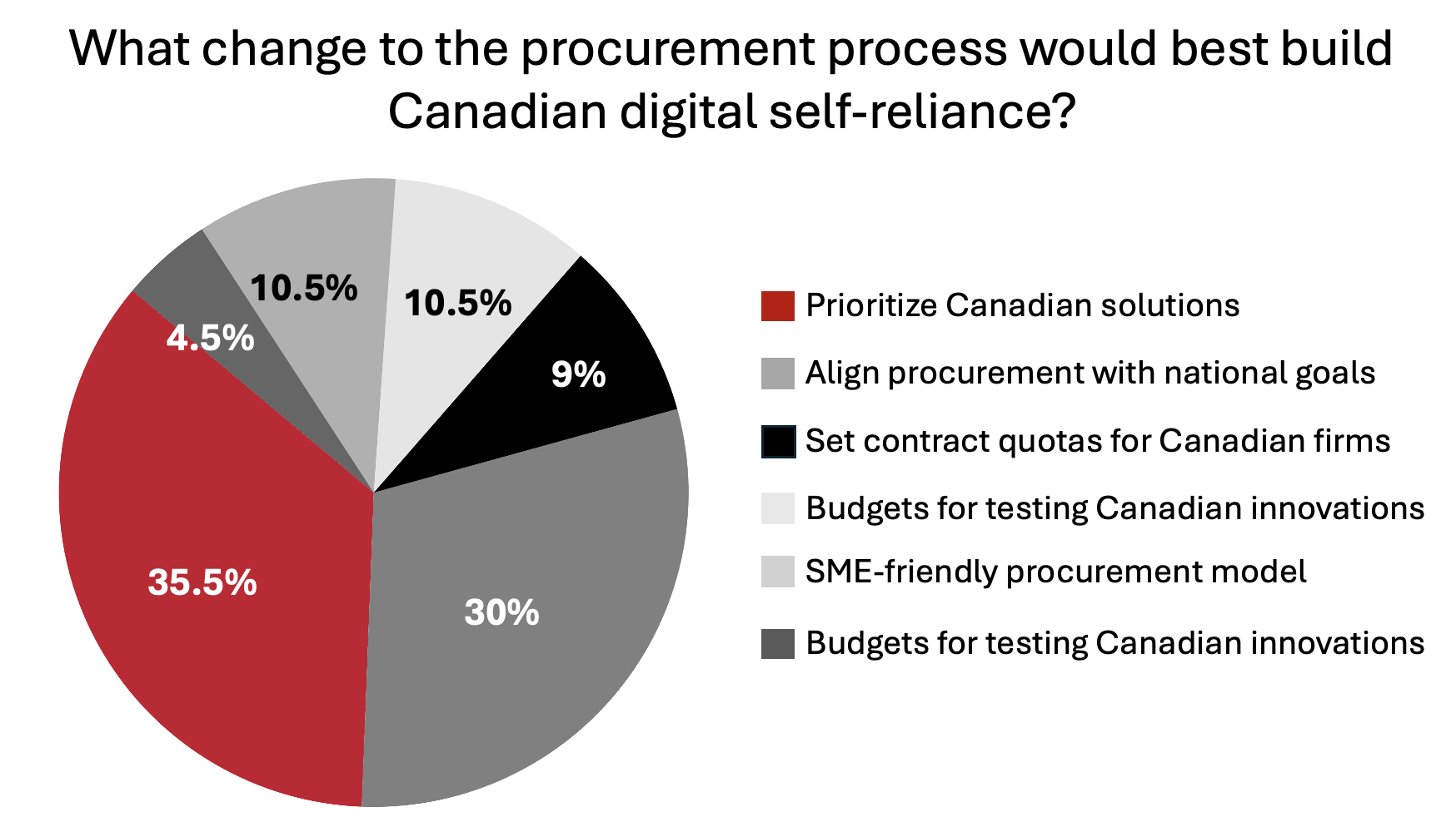 Support for Made-in-Canada solutions echoed across much of the survey, reflecting a broad desire for procurement policies that strengthen domestic innovation and digital self-reliance.