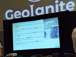 At GeoIgnite 2025, Peter Rabley, CEO of the Open Geospatial Consortium (OGC), took us through a lively, thought-provoking talk exploring the collision between artificial intelligence (AI) and the geospatial industry and oscillating between dystopian warnings and hopeful opportunities.