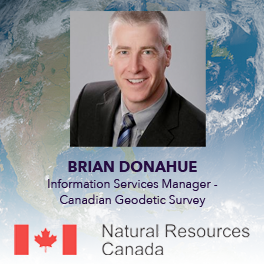 Brian Donahue works with the Canadian Geodetic Survey, Natural Resources Canada and is currently the Information Services Manager of the Geodetic Integrated Services Unit. He is also the chair of the Canadian Geodetic Reference System Committee (CGRSC), a Federal-Provincial-Territorial working committee of the Canadian Council on Geomatics (CCOG), which is responsible for planning geodetic reference system improvements in Canada.