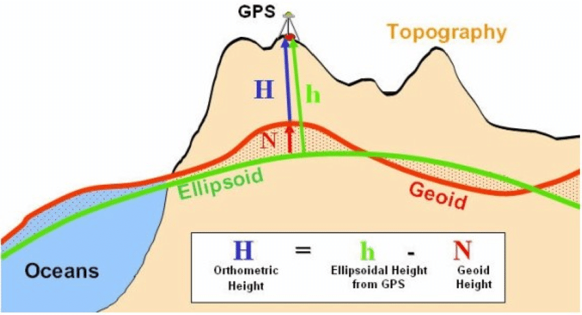 Horizontal positioning is primarily geometric: it depends on how positions relate to the Earth’s centre and how motion is modelled over time. Vertical positioning, by contrast, depends on gravity. Heights are not measured purely in geometric space; they are referenced to an equipotential surface that approximates mean sea level.