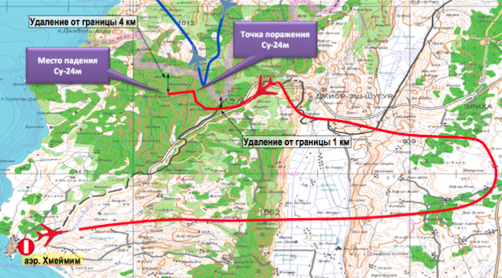 We see the blue lines are the territorial borders of Turkey and the big red arrow is showing us where the Russian plane passed through Turkish airspace.