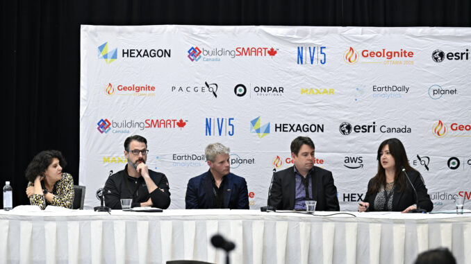 Held on May 14, 2025, at GeoIgnite 2025 in Ottawa, and moderated by Bilyana Anicic, President and Principal Consultant, Aurora Consulting, the session was part of the event’s broader focus on geospatial innovation and cross-sector transformation. The panel featured Nadine Alameh, Executive Director of the Taylor Geospatial Institute, who opened with a call to close the gap between research and real-world impact. From industry, Kevin Jones, Vice President of Product at CATALYST (PCI Geomatics), stressed the need to move from prototypes to production-ready pipelines that serve global-scale challenges. Nicholas Kellett, Founder and CEO of Deploy Software Solutions, brought in the software perspective, emphasizing interoperability and agile development cycles. Representing the cloud and AI infrastructure layer, Phil Cooper of Amazon Web Services spoke to the importance of scalable platforms that democratize data access and accelerate insight generation.