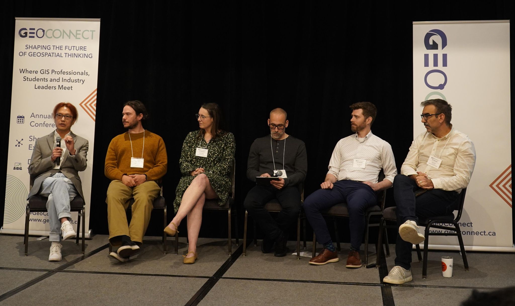 Serving as a break from a day of presentations, the “GIS Industry Peers” answered GIS related questions submitted by audience members. There were a wide range of topics including the future of AI and GIS, developments of GIS tools, knowledge gaps within the GIS industry and governance and management related concerns. One notable question asked the peers to discuss their ideas for resisting the monopoly held by Esri over the GIS industry. This was a mildly awkward moment, as Esri Canada was a major sponsor of the event and had staff members in the audience.