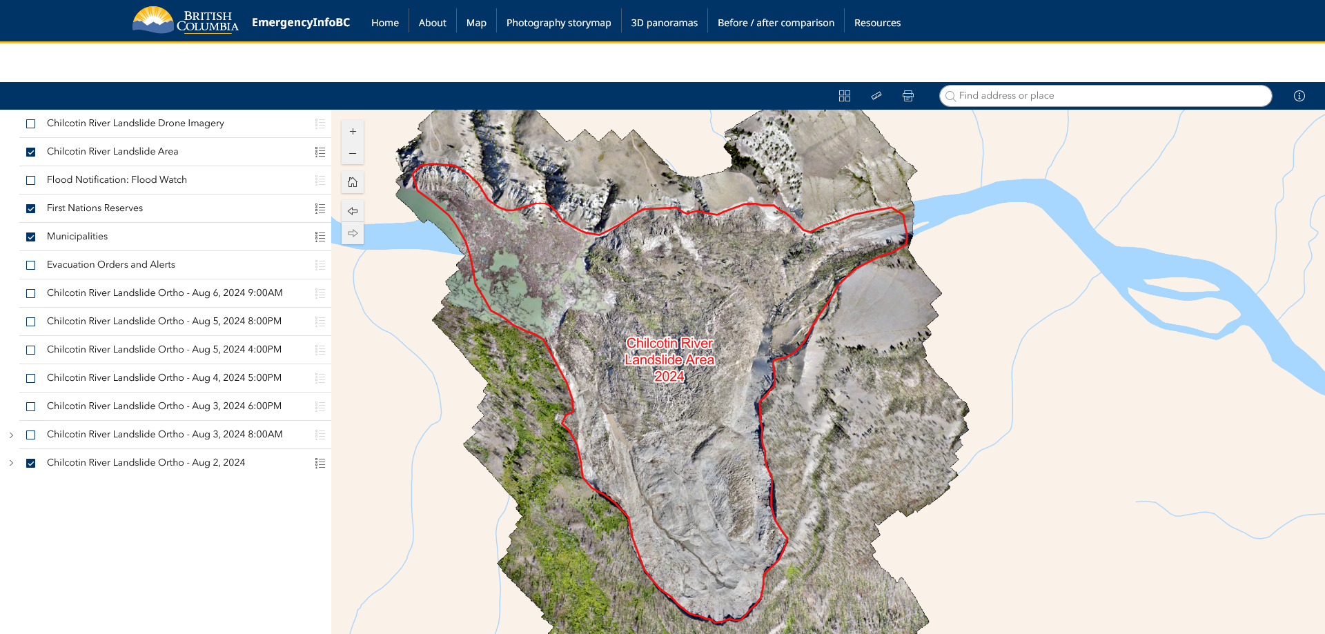 The first presentation was led by two representatives from GeoBC, Michael Dykes (Geospatial Services Coordinator) and Ella Li (Geospatial Analyst). Michael and Ella discussed the Chilcotin River Landslide Information Portal, an online resource with information about the July 2024 landslide and blockage of the Chilcotin River. The Information Portal contains a wide variety of applications such as a Situational Awareness Map, a 3D panoramic of the landscape and a photography collection, including before and after picture of the area. Michael and Ella ended their presentation by discussing some of the web development practices used in creating the Information Panel.