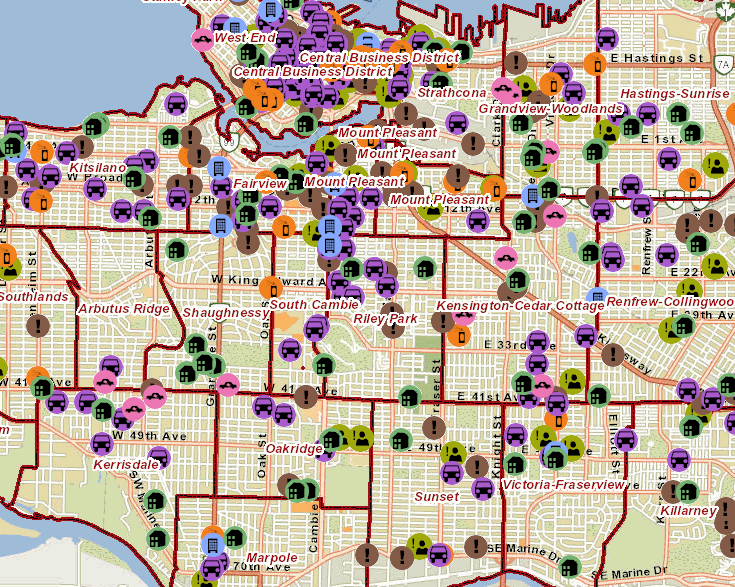 In conjunction with GeoDash, the City of Vancouver’s Open Data site now offers the same data as GeoDash as downloadable data in formats of SHP, JSON, CSV, and XLS. Although Open Data has offered the last two formats for several years, it now includes coordinates in these files so that the user can put the crimes on the map themselves.