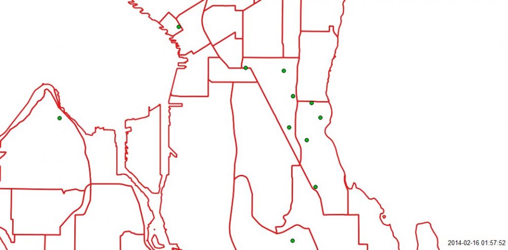 Using QGIS and TimeManager, we can filter the results from the last complete year, 2014, to display only crimes of burglary and make a video to display these crimes in intervals of three days from January 1, 2014 thru December 31, 2014.