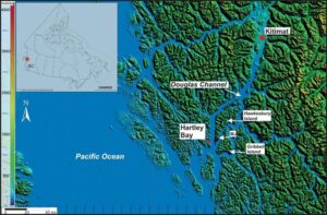 The Geological Survey of Canada has recognized a tsunami risk and the presence of a potential seismic fault within Douglas Channel, in the vicinity of Kitimat in 2012 study. A scholarly article authored by the Geological Survey in collaboration with the Department of Fisheries and Oceans reports that two significant prehistoric landslides occurred in Douglas Channel, which generated substantial tsunamis. The study further suggests that these landslides may have been induced by seismic activity along the identified fault line.