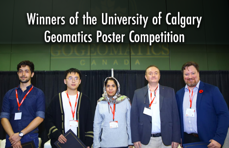 The first prize of $500 was awarded to Kent Jones, Derek Lichti, and Robert Radovanovic for their poster on synthetic images for georeferencing post-capture camera images to mobile mapping system point clouds.